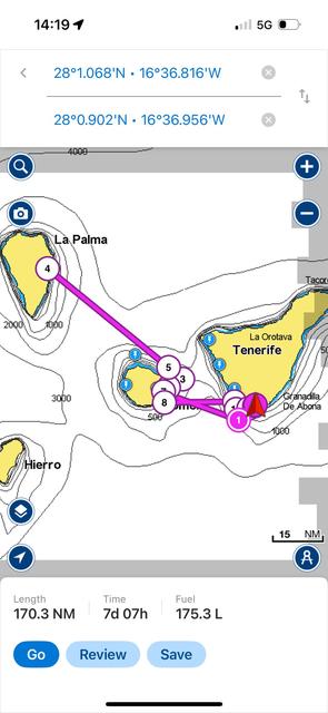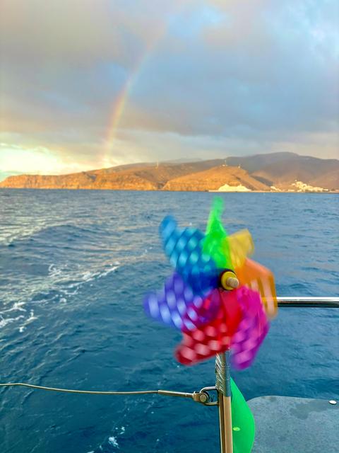 Calm day, so we hugged the coast of La Gomera before shooting across to La Palma. The wind squeeze between islands gave up some breeze, enough the we could sail most of the day instead of motoring.