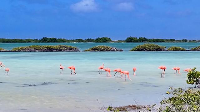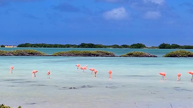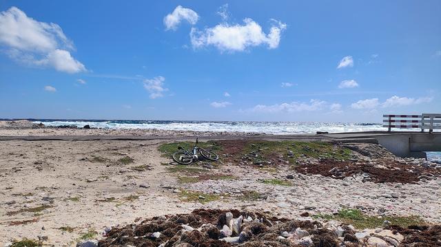 We biked the southern loop and part of the Lagun Cai loop. Probably about 40 km in total. The wind surfing at Sorobon beach was a great 'vibe'. The east coast was wild and windy, ruff surf blowing ashore. When we crossed the south at Wilemstoren, we were only ~90 Kms from Venezulea. After the lighthouse, the salt lakes presented us with a Flamboyance of Flamingos.