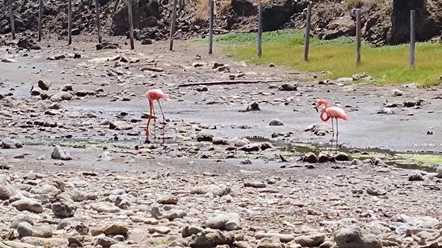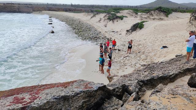 Today we booked a tour with adventuresmakers tours and visited the northern half of Bonaire. This region is set aside as a national park. We stopped off at the only beach where green sea turtle lay their eggs. The rescue agency was finding baby turtles in the nest and releasing them to the sea. The cove was a very rough area. We then went to the blowhole and the lighthouse before rounding the north point to a great snorkelling stop. We had a good 'Dutch' lunch on the strand between a salt lake and the ocean, a bit windy. A couple of Flamingos didn't get the memo of residing in the southern shoals, and were hanging out with us up north.